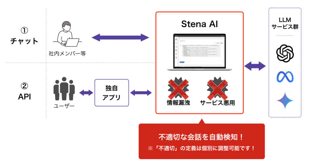 ・不正利用の自動検知で生成AI活用を促進するサービス「Stena AI」